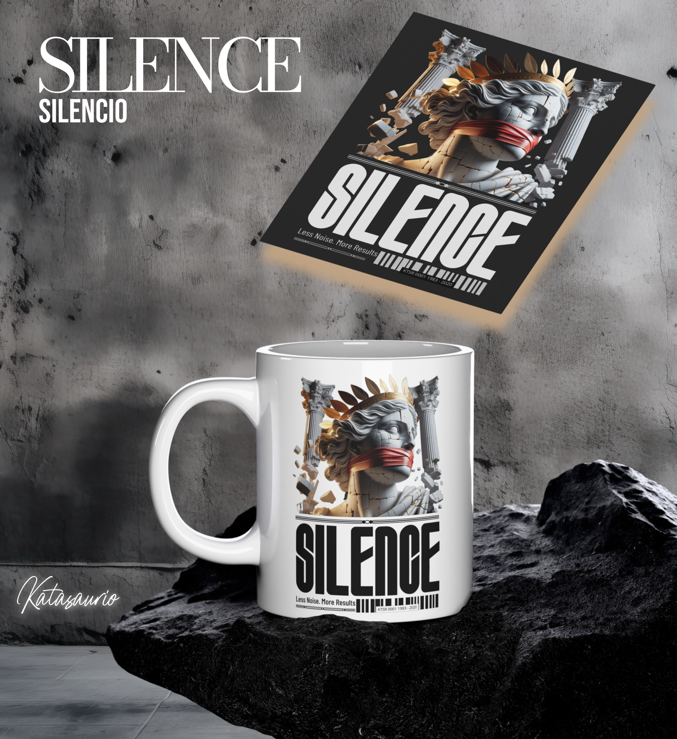☕ Tres tazas de porcelana importada con cada diseño de las remeras — resistente al microondas, al lavavajillas y a los años